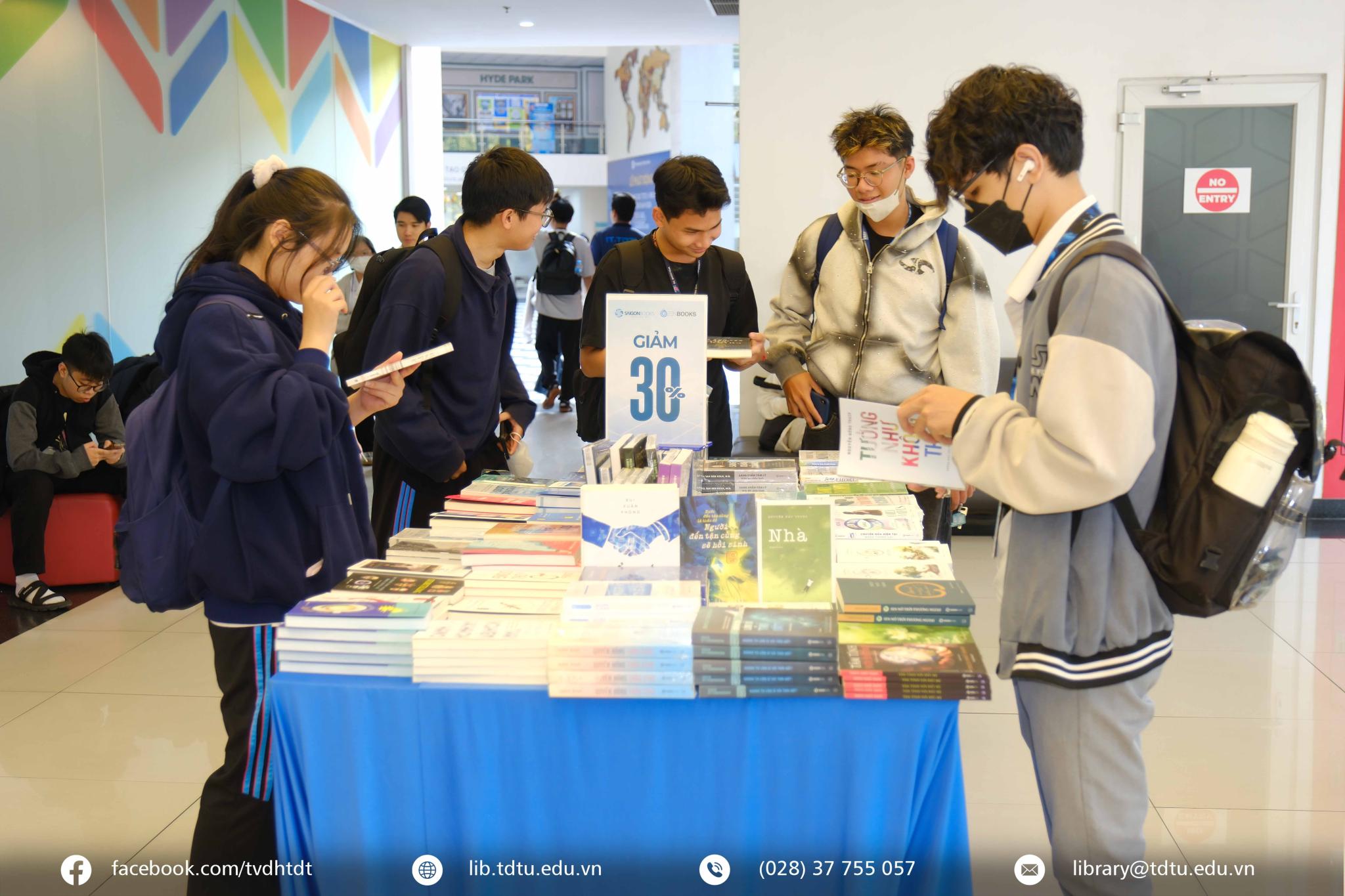 Trong những ngày cuối tháng 3, khu vực sảnh trệt Thư viện đã trở nên sôi động hơn với Hội sách Phát triển Văn hóa đọc 2026, diễn ra từ ngày 28/3 đến 03/4/2026. Hoạt động do Thư viện phối hợp cùng Công ty Cổ phần Văn hóa Sách Sài Gòn (Saigon Books) tổ chức