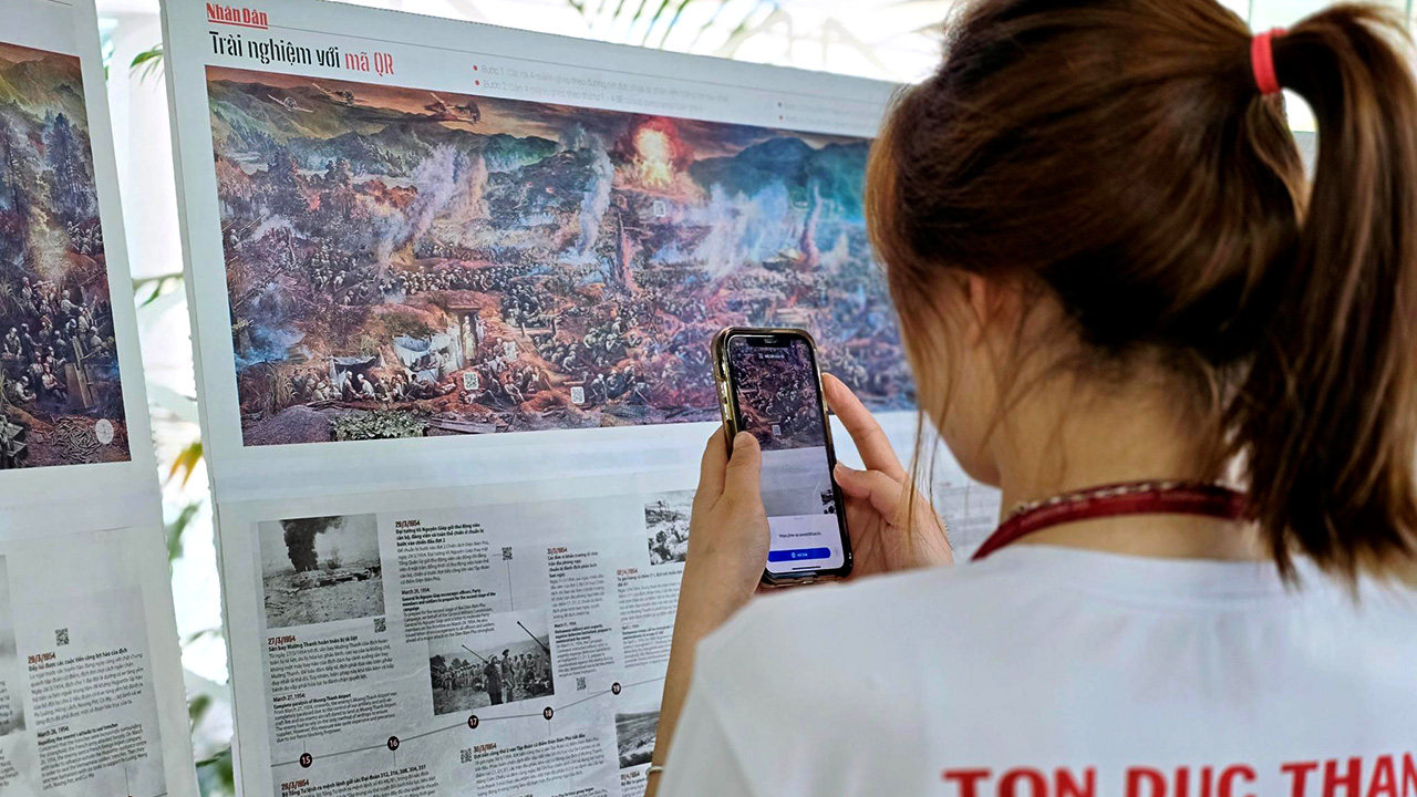 Nhằm kỷ niệm 70 năm chiến thắng lịch sử Điện Biên Phủ, Thư viện triển lãm tranh bức tranh panorama "Chiến dịch Điện Biên Phủ" dài 3,21m, bao gồm 4 trang nội dung chi tiết, 4 trang tóm tắt diễn biến 56 ngày đêm của chiến dịch dưới dạng nhật ký bằng cả tiếng Việt và tiếng Anh, và 4 trang in toàn bộ bức tranh với hơn 4.500 nhân vật được tạo thành từ các trang Báo Nhân Dân số đặc biệt.